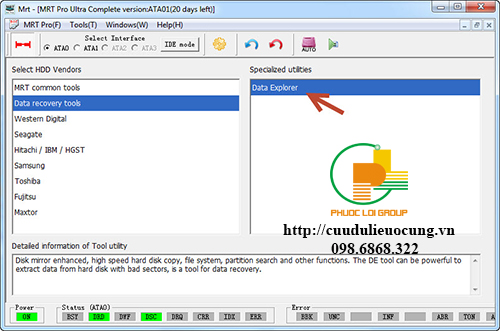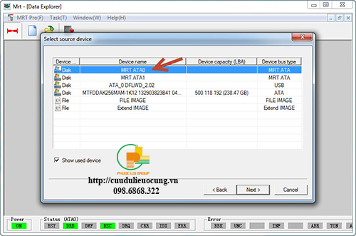 Khi gắn ổ cứng vào tool MRT chúng ta mở chương trình data extractor lên.