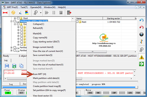 Đúng như đã hẹn chị khách hàng cần cứu dữ liệu tại Q. Gò Vấp đã có mặt tại chổ làm của mình từ rất sớm. Chị mang cả cái laptop của chị đến và khi nhìn thấy mình mới hiểu vì sao ổ đĩa cứng của chị bị hư. Đó là vấn đề vệ sinh laptop. Bên web www.phuocloigroup.com trước đây mình có viết bài hướng dẫn cách vệ sinh laptop, nhưng rồi sau này chuyển sang code Wordpress mình làm mất bài viết đó luôn, hôm nào rãnh sẽ viết lại. Khi tháo bung laptop ra để lấy ổ đĩa cứng mình thấy phần giải nhiệt CPU bị đóng đầy bụi, đặc biệt là lông thú cưng, vì thế đường thoát nhiệt qua hệ thống quạt gió đã bị " nghẹt " nên máy chạy rất nóng và hay bị tắt đột ngột. các bạn nghĩ xem ổ đĩa cứng đang đọc dữ liệu thì bị mất nguồn đột ngột như vậy nhiều lần thì... " còn gì của" nữa chứ. Không hư mới lạ. Theo lời chị diễn tả thì chổ trung tâm cứu dữ liệu kia mở lên thấy ổ C và ổ D nhưng không thấy ổ E mà dữ liệu lại nằm trong ổ E mới đau chứ. theo chuẩn đoán ban đầu thì 99% là ổ đĩa cứng của chị đã bị bad sector, mà khu vực bad nằm ngay đúng partition E, điều này cũng dễ hiểu thôi bởi vì đây là khu vực chị lưu trữ dữ liệu và hay truy xuất nhiều, cũng hay bị tắt đột ngột khi đang đọc khu vực này. Sau khi nhìn qua nhìn lại thấy ổ cứng còn " sạch sẽ " mình quyết định không cần vệ sinh mà gắn ngay vào tool. Còn muốn biết vì sao phải vệ sinh thì bạn có thể xem bài viết : " Sửa cứu dữ liệu ổ cứng bị gỉ mạch ". Vì cần extract DATA nên mình dùng tool MRT có tích hợp data extractor. Mình sẽ tường thuật từng bước, cuối cùng của bài viết mình có làm video clip để anh em kỹ thuật xem cho rõ hơn. Riêng với khách hàng đang có nhu cầu cứu dữ liệu có thể thấy chán khi đọc bài viết này. Nhưng xin hãy yên tâm vì trường hợp của bạn chúng tôi hoàn toàn có thể cứu lại, hay phục hồi lại được dữ liệu. Bạn có thể dừng tại đây không cần đọc tiếp và nhất máy gọi điện thoại ngay cho Lợi ( 1976 ) số điện thoại 098.6868.322 hoặc 0902.424280. Và yên tâm có thể gọi bất cứ lúc nào ngoại trừ ngày Chúa nhật vì là ngày biệt riêng ra để thờ phượng Chúa! Hoặc nếu sốt ruột hơn thì mang ngay đến 53 Nguyễn Lâm P.6 Q.10 Tp. HCM. Và cũng lưu ý đọc lịch làm việc của trung tâm cứu dữ liệu Phước lợi Group!