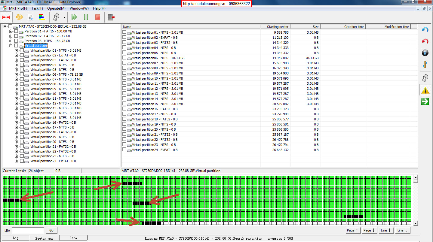 Chúng ta lần lượt chọn từng head, nhớ là mỗi lần chỉ chọn 1 head mà thôi. Chọn vào nút start để bắt đầu copy data ( map data ). Hãy để ý kết quả :