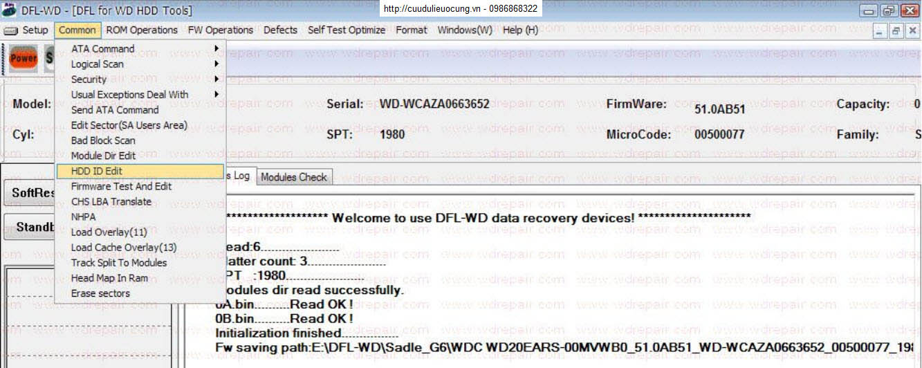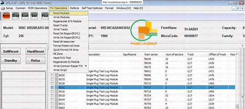 Xin lưu ý các bạn trước khi chúng ta can thiệp vào phần firmware này thì công đoạn vô cùng quan trọng và cần thiết đó là backup toàn bộ Rom, firmware nguyên thủy của ổ đĩa cứng đó. Sau khi backup thành công chúng ta mới sữa lỗi các modul trong firmware. Điều đó giúp cho chúng ta có thể trả lại nguyên gốc mỗi khi chúng ta thao tác sai hoặc gặp sự cố.
