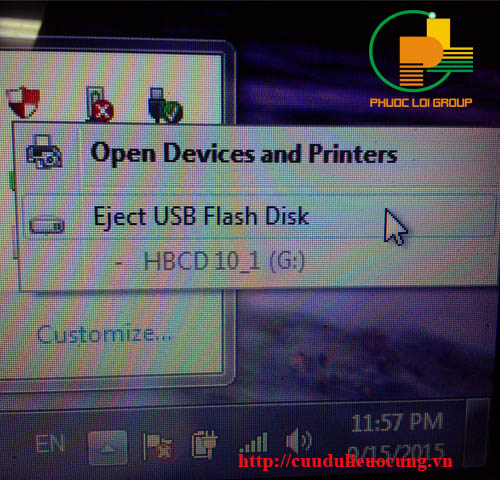 Và cuối cùng là trước khi muốn rút dây cắm chúng ta phải đưa trỏ chuột vào biểu tượng usb, click chuột một phát để thông báo này hiện ra :