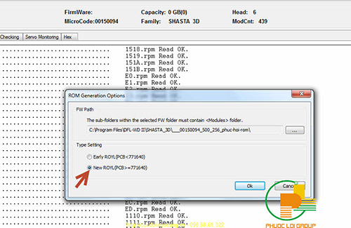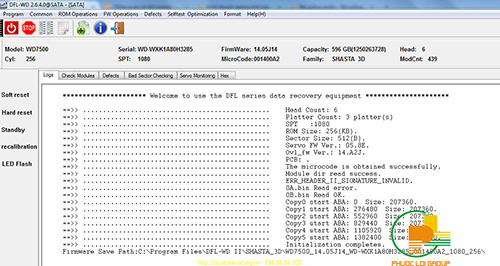 Bây giờ chúng ta tiến hành đọc modul. Như đã từng phân tích, khi bắt đầu khởi động ổ đĩa cứng sẽ đọc nội dung của chip Rom trên phần board, sau đó nó sẽ đọc các modul trong phần firmware trên mặt đĩa và so sánh xem các thông tin có trùng khớp hay không, nếu không trùng khớp quá trình detect sẽ dừng lại và ổ đĩa cứng trả về thông số báo lỗi. Như vậy có thể nói trong phần dữ liệu chứa trên bề mặt đĩa sẽ có nội dung của Rom và nó nằm trong các modul, chúng ta chỉ cần đọc các thông số đó và ghi vào chip Rom trên board là xong! Vì thế việc đọc modul là bước vô cùng quan trọng