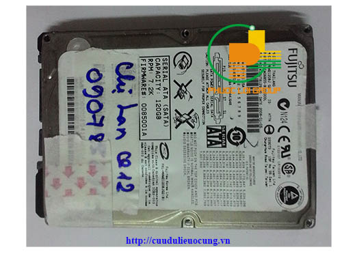 Cứu dữ liệu ổ cứng laptop fujitsu 120g chị Lan Q.12 bị rơi, ổ cứng không nhận tức không detect nữa, khi cắm điện vào nghe tiếng kếu rất lớn.