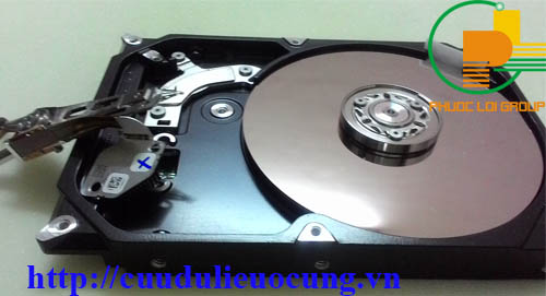 Đây là bên trong tình trạng ổ cứng lúc chưa thay đầu đọc, chúng tôi có ký hiệu chử x để xác định đầu đã bị hỏng.